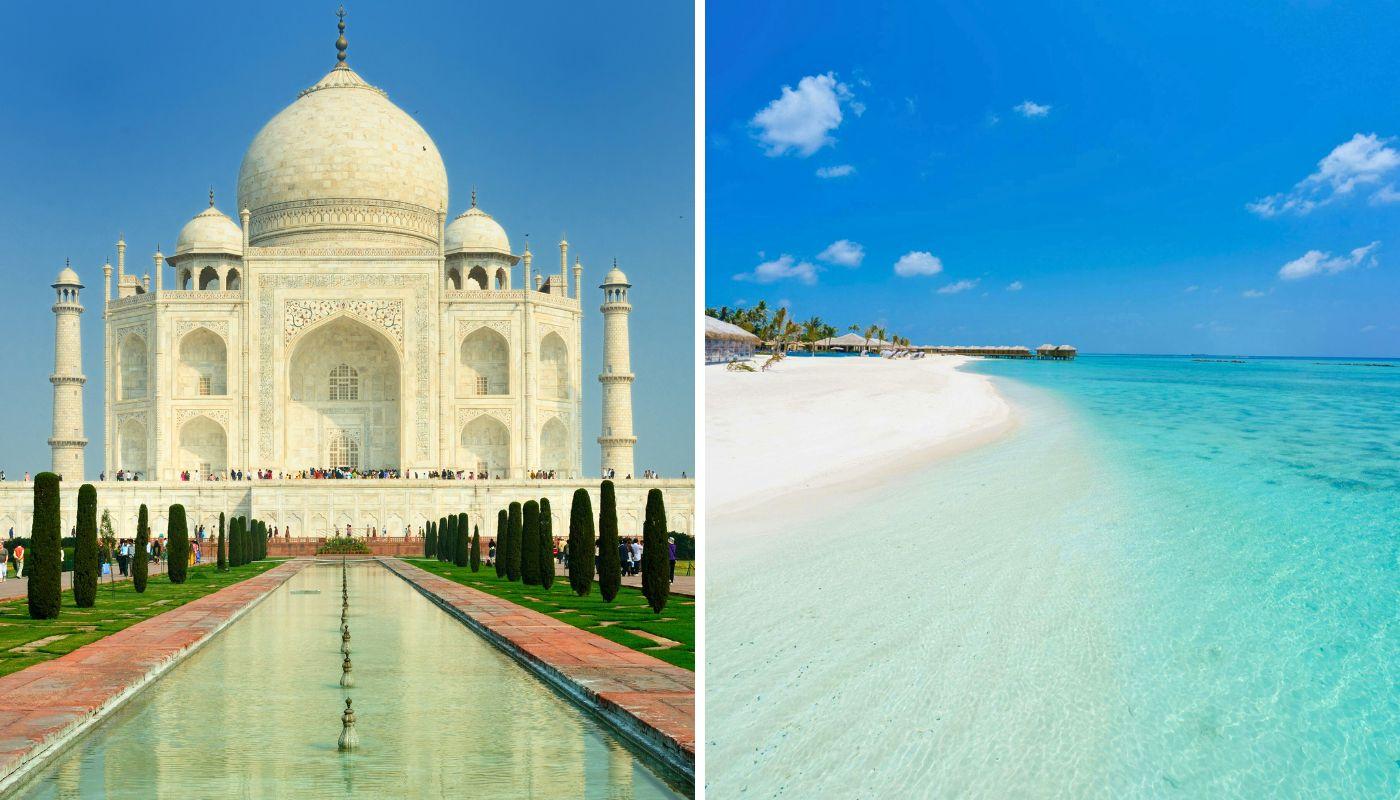 ¿Qué te parecería una luna de miel que combine dos poderosos rincones del continente asiático? India es un país que no deja a nadie indiferente con lugares como Delhi, Agra (hogar del Taj Mahal) o Jaipur (conocida como la ciudad rosa). Después de unos días frenéticos, toca desconectar en un paraíso terrenal como es Maldivas. Disfruta de uno de los fondos marinos más espectaculares del mundo y de unas playas como, seguro, no has visto nunca antes.